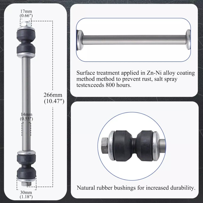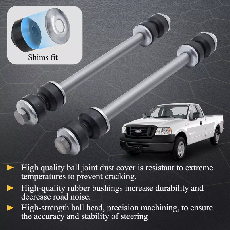 - ✔Function: Signs your sway bar links need replacement include clunking sounds during turns and bumps, loose or misaligned steering wheel, poor handling, uneven tire wear, and visible damage in the suspension system. Replace our accessories, can take away the clunking/clicking coming from the suspension you heard from every bumps in the road! Giving you a good driving experience.