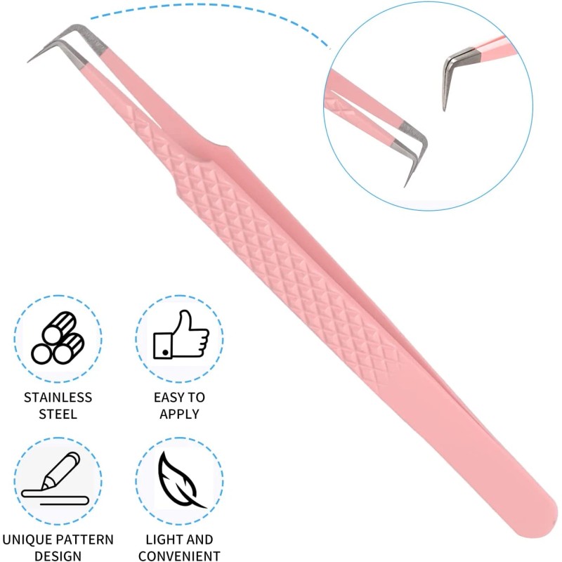 - ❤Premium quality:Our pink 90°tweezers tool are made of 100% high quality stainless steel Materia.Very durable and not easily deformed or rusted.
