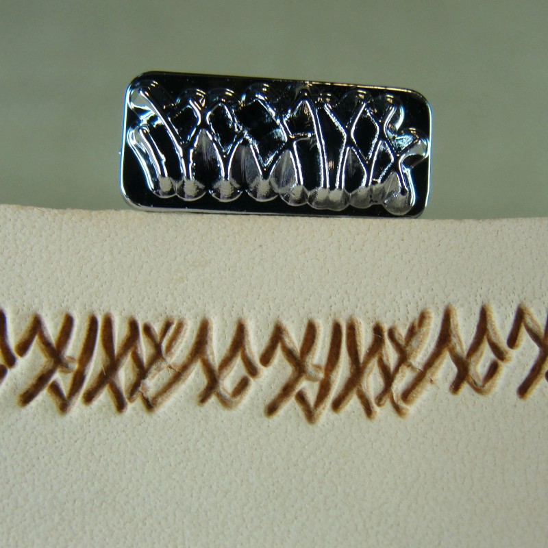 This Short Grass stamp is new and produces a very crisp impression. Stamped on the tool is "China" and "F111". The impression measures 17/32" in width and 3/16" in height. This tool will be a great addition to any leather craftsman's collection. This tool should not be struck with a weighted maul.