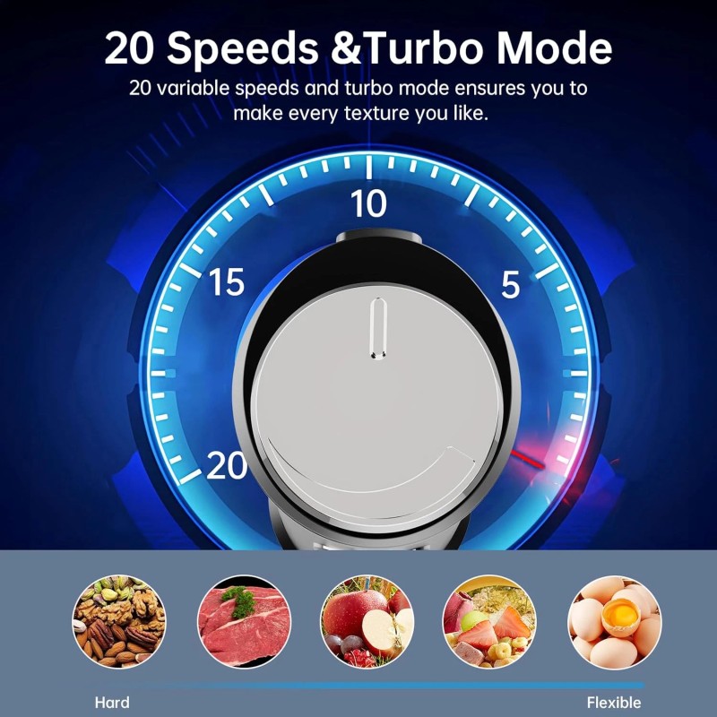 Licuadora de mano de 1000 vatios resistente a rayones, 20 velocidades y turbo