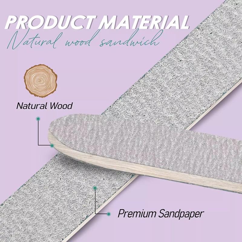 Material natural y de primera calidad: la superficie de la lima de uñas está hecha de material de papel de lija de alta calidad y su lado intermedio es de madera, no tóxico y seguro para usted.
