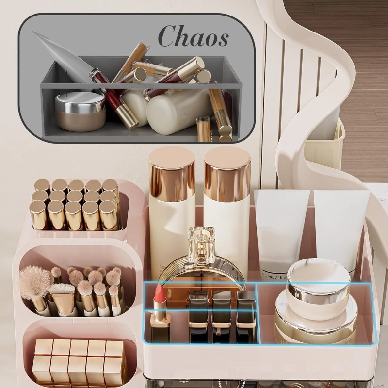 Does not apply Makeup Organizer with Drawers for Vanity, Spacious Cosmetic Display Case with Ma