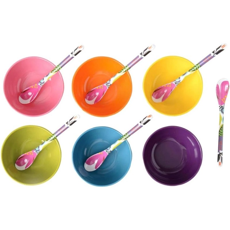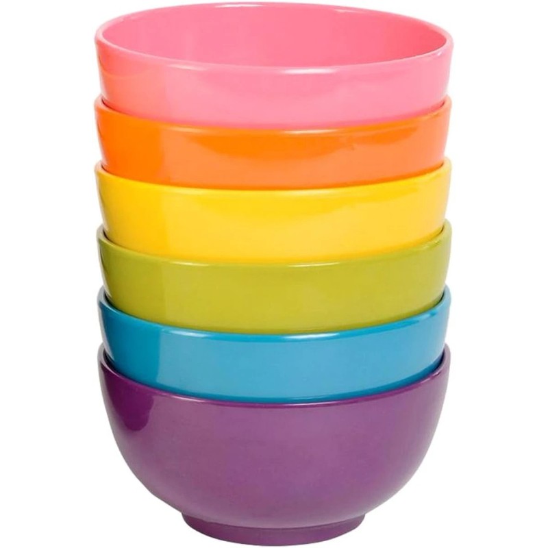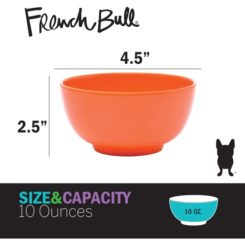 Fun set of 6 multi colored mini-bowls. Sized to fit your favorite tidbits or dips, they'll make a splash in any setting. Colors include blue, pink, lime green, purple, orange, and sunshine yellow. French Bull's high-grade glazed melamine solid colored designer mini bowl set is great for the home or as a gift. The scratch and shatter resistant 300ml bowls are easy to clean since it's dishwasher safe, and heat resistant to 356-degree F, 180-degree C. Melamine is resistant to high heat and it's shatterproof. Plus, melamine is food safe and does not easily absorb fluids from food, which helps you avoid contaminating your food with harmful bacteria - a leading cause of illness and food poisoning. The durability and functionality of the material is perfect for indoor or outdoor entertaining. French Bull - reinterpreting everyday staples with a fresh, modern spin.
