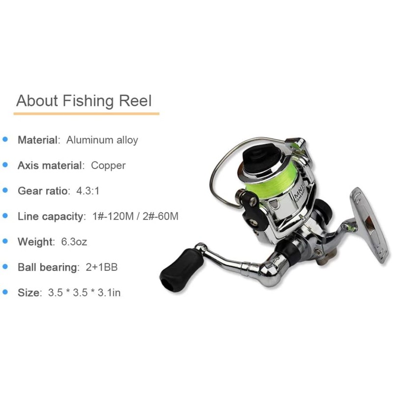 The mini spinning reel features a 4.3:1 gear ratio and 2+1BB with a copper axis for smooth and easy operation, making your fishing experience enjoyable and efficient.