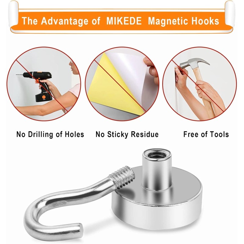 · MIKEDE magnets not only have high quality and exquisite appearance, but also have super strong magnetic force, made from the world's strongest magnetic element, our neodymium magnets with hooks are incredibly powerful. No matter your application, our powerful magnets can handle the job!