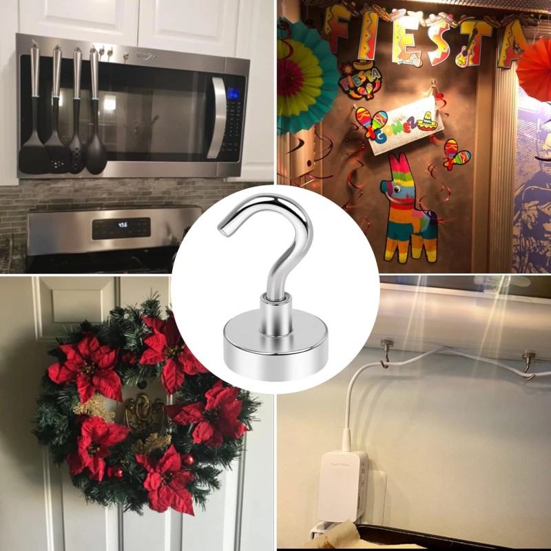 • MAGNETIC HOOKS FOR HANGING: These heavy duty magnetic hooks can securely hang a variety of items, including hats, keys, towels, and decorations. They are ideal for use in kitchen, grill, and other areas, making them an essential tool for organization
