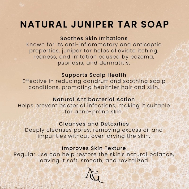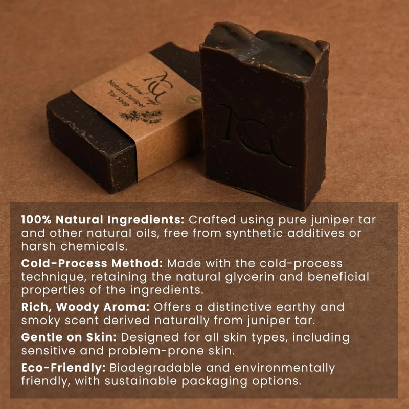 - NATURAL JUNIPER TAR: Infused with pure juniper tar, known for its healing properties, ideal for soothing irritated skin.