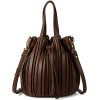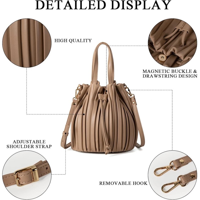 Extolove Bucket Bags for Women, Mini Leather Drawstring Crossbody Bucket Purses Pleated Shoulder Handbags
