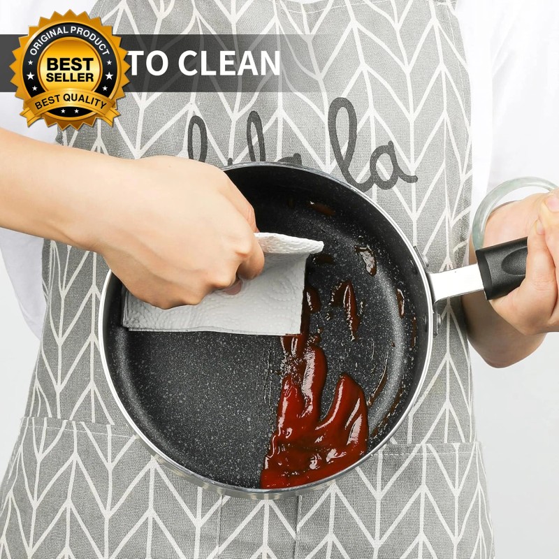 - [Multiple Layer Non Stick Coating]Premium non stick interior featured exceptionally durable, double coated, and scratch resistant,which is ideal for easy cooking,re-heating vegetables,sauces,pasta or soup.Easy to clean for superior nonstick performance,just clean by soft sponges.