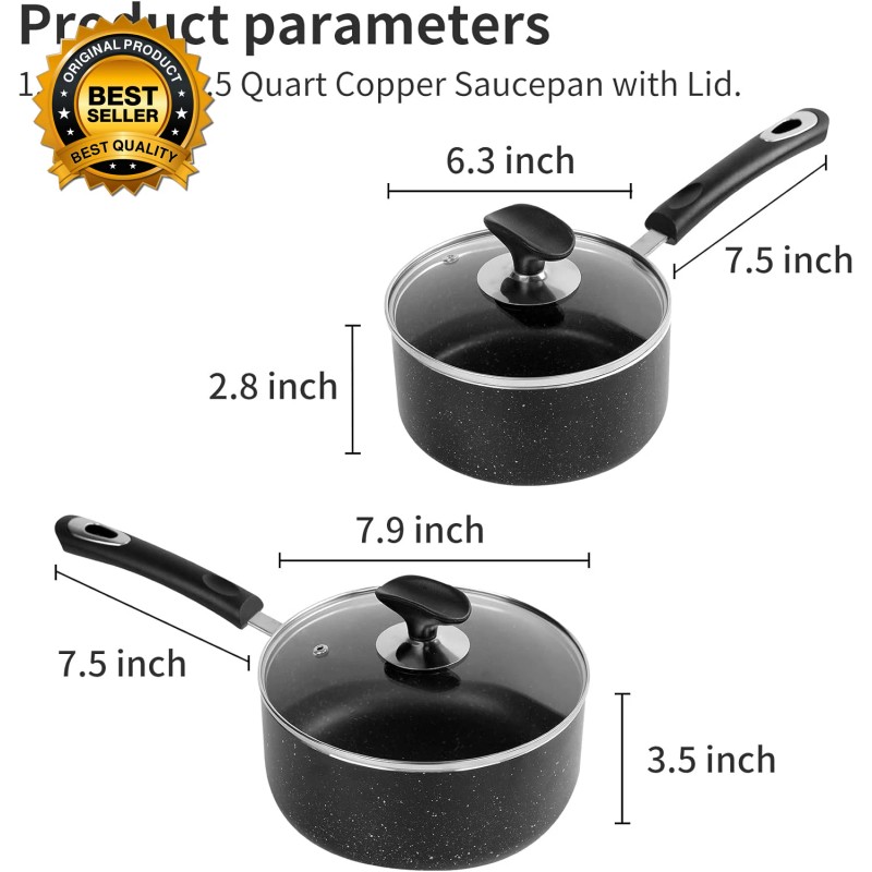 - [Set of 2]The set comprises of one 1.5Qt saucepan and one 2.5Qt saucepan.saucepan is made by top material aluminum alloy for long lasting performance ,great used for home kitchen and restaurant.Multi-layer non stick for ultra durability.