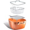 - SQUARE DEEP-FRYING PAN SET: Rely on this deep-frying pan set for all your daily cooking needs. This set includes a 9.5-inch square deep-frying pan with glass lid, a frying basket, and a stainless-steel steamer tray, providing quality cookware for you to fry, stir fry, and steam foods, braise and sear meats, cook vegetables and more.