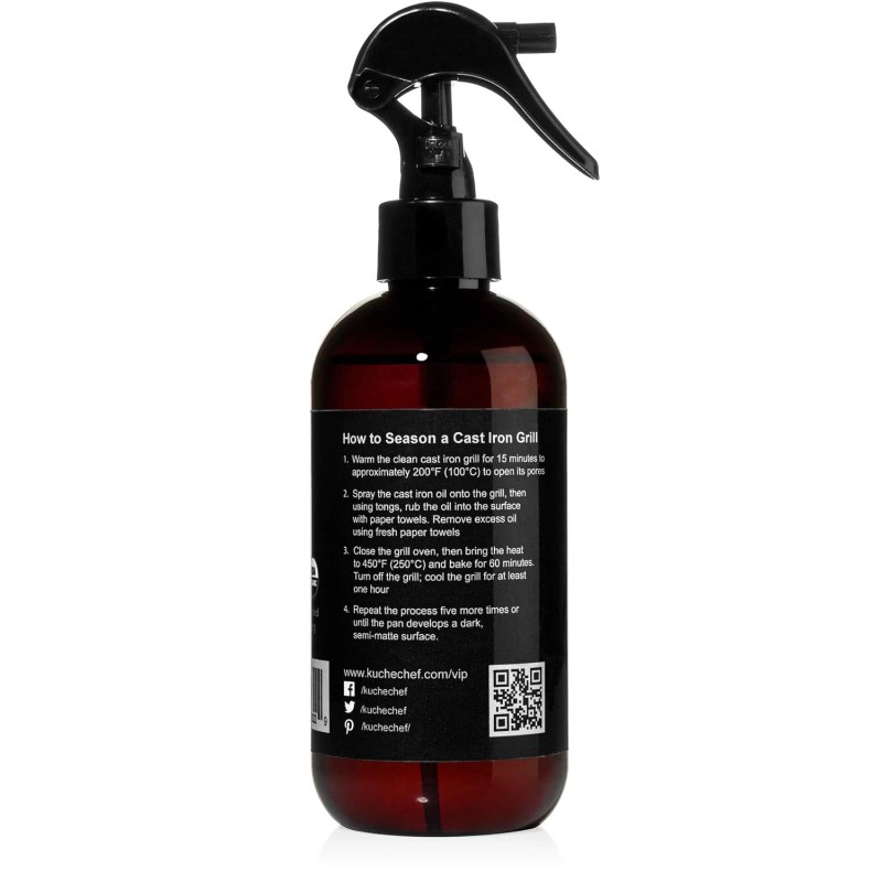 Kuche Chef's popular Cast Iron Oil now in an easy to use bottle for your grill!