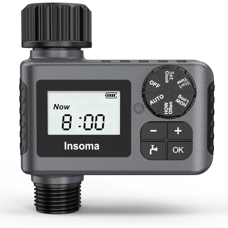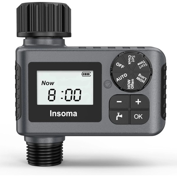 • 【Long-lasting & Durable】 Insoma water hose timer is made of IP55 waterproof material and added a seal ring in the battery cover to isolate moisture. The material of hose timer's connector is added 35% fiber, which can withstand high water pressure from 7.25 psi to 116 psi. Each sprinkler timer is equipped with an additional reducing hex bushing (3/4" Male NPT to 1/2" Female NPT) and thread seal tape to fit different size hoses or faucets to prevent it from leakage.