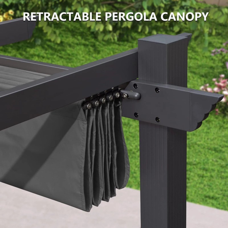 Pergola Shade Cover, Retractable Pergola Canopy for 10' X 13' Outdoor Pergola, Fade Resistant Durable Yarn-Dyed Fabric Pergola Replacement Canopy W/Drawstring - Gray