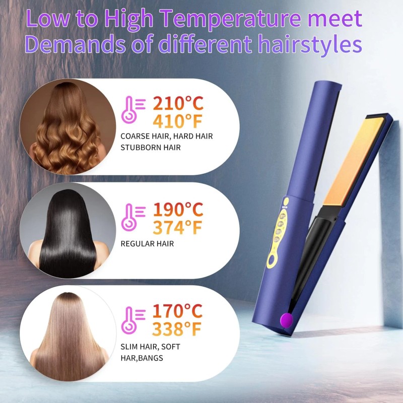 Does not apply Plancha de cabello inalámbrica 2 en 1, rápida, recargable, para viajar.