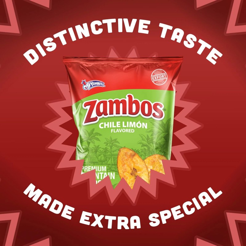 • DISTINCTIVE TASTE: Enjoy the wonderful taste of Zambos premium plantain chips made extra special with the distinctive flavor of chili limon; Each chip is seasoned for an irresistible experience