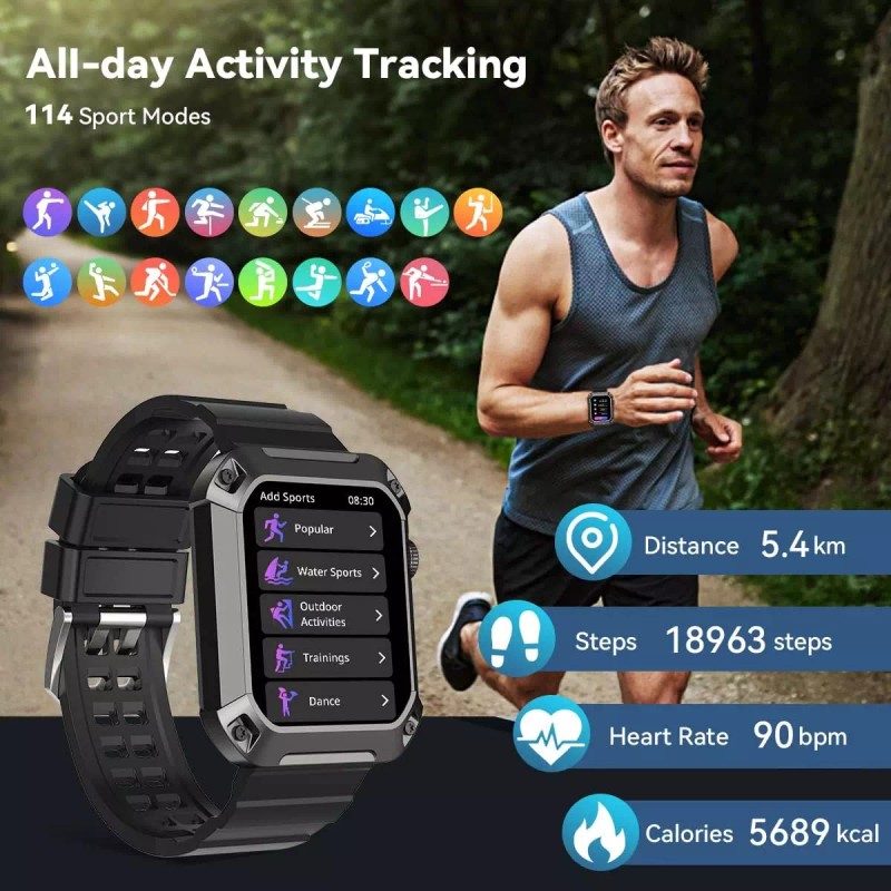 - Monitor de salud: registre con precisión su frecuencia cardíaca, presión arterial, oxígeno en sangre y datos de sueño, etc. El rastreador de actividad admite modos de movimiento con un registro completo de datos de ejercicio. El reloj rastreador de actividad contiene un podómetro que permite controlar las calorías quemadas a lo largo del día. La función de monitor de salud puede ayudarlo a adaptarse a un estilo de vida más saludable. UNA MUY BUENA ELECCIÓN como regalo de Navidad para hombres.