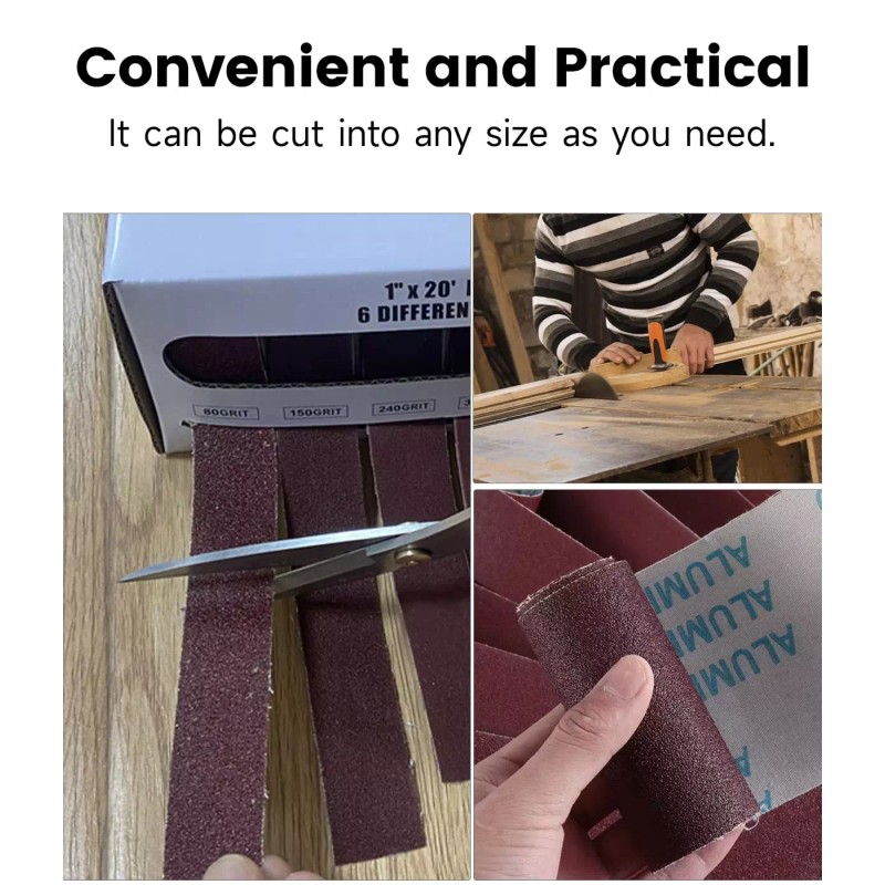 Rollo de tela de esmeril, rollo de papel de lija abrasivo de 5 granos de 1'' x 2