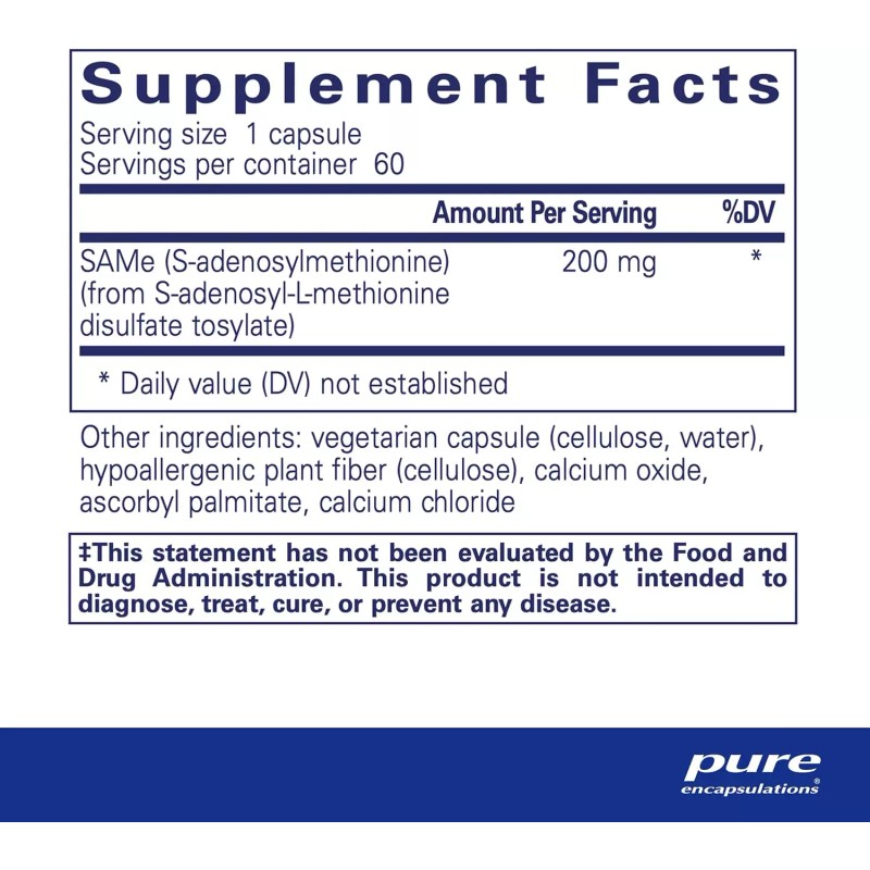 - Methylation Support: Each Pure Encapsulations SAMe supplement capsule contains 200 mg of SAM-e S-adenosylmethionine for methylation support and glutathione production*