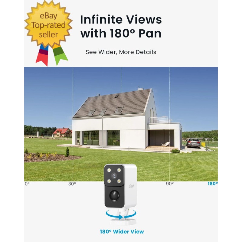 - 【𝐍𝐞𝐰𝐥𝐲 𝐔𝐩𝐠𝐫𝐚𝐝𝐞𝐝 𝐏𝐚𝐧 𝟏𝟖𝟎° 𝐕𝐢𝐞𝐰】This wireless cameras for home security features 2k HD resolution while providing clear full-color night vision, allowing you can see more detail even in low-light conditions. With the upgraded 180° panning wide-angle view(𝐍𝐨𝐭 𝐕𝐞𝐫𝐭𝐢𝐜𝐚𝐥 𝐫𝐨𝐭𝐚𝐭𝐢𝐨𝐧), you will no longer miss dead spots, allowing you to see wherever you want to see that traditional wireless outdoor camera can't match. ieGeek security camera comes with a 2-year warranty, giving you ultimate peace of mind.