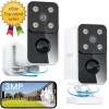 Security Cameras Wireless Outdoor Pan Rotating 180° Home Outdoor Security Camera, 2K Battery Powered Wifi Camera with AI Motion Detection, Spotlight/Siren,Color Night Vision,Works W/Alexa(2Pcs)