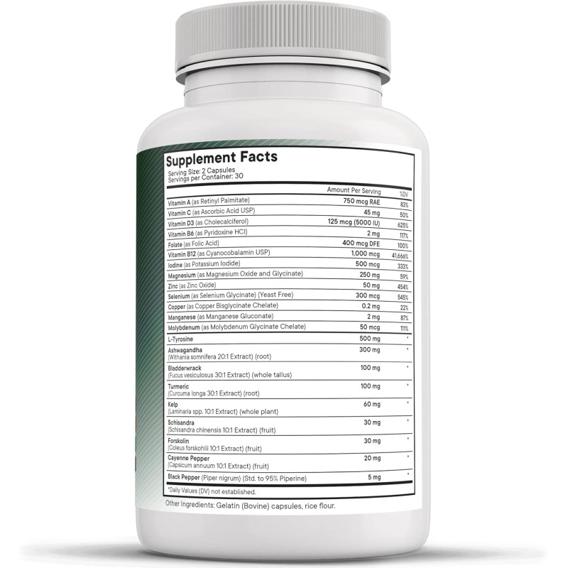 - Introducing the New Age Thyroid Blend - In addition to thyroid support for women and zinc supplements for men, our formula contains bladderwrack, turmeric, kelp extract, schisandra extract, forskolin, cayenne pepper, vitamin b complex, and magnesium.