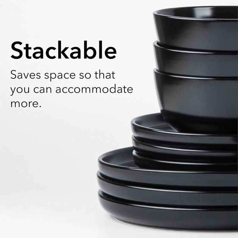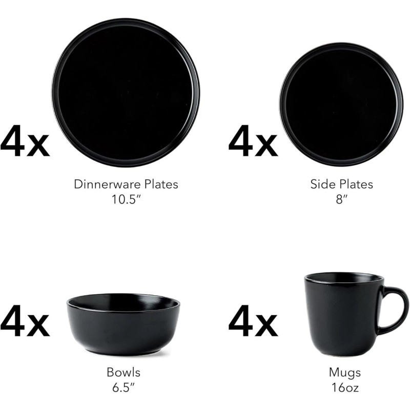 Does Not Apply SKUGGA Round Stoneware 16pc Dinnerware Set of 4, Plates, Bowls, Mugs,Matte Black