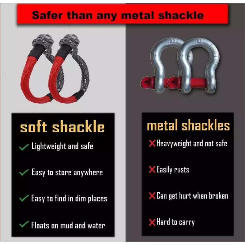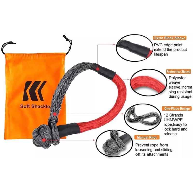 LightweightCompact density, strong and durable, made of Ultra High Molecular Weight Polyethylene (UHMWPE) Synthetic Fiber,Portable and Lightweight | Durable & SaferMuch nicer than metal shackles easy to store and easy on and off. Held up to pulling out a large tree. Comes with Extra Protective Sleeve, increase the friction and protecting the rope from abrasion | 58,000LBS breaking strengthSoft Shackles provide with 58,000LBS breaking strength, Works perfectly with Tow straps, SUV Off Road Towing ATV Recovery with ATV, UTV, Off-Road Sailing Trucks, 4x4 |