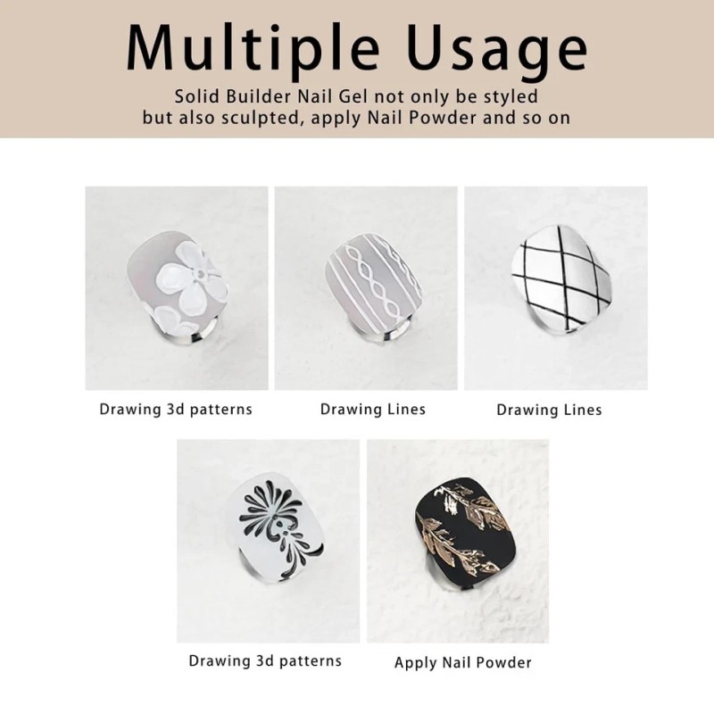 - Multiple Usage: Solid Builder Nail Gel not only be styled, but also sculpted, apply Nail Powder and so on. You can DIY different patterns with this 3d nail gel to make your hands more attractive
