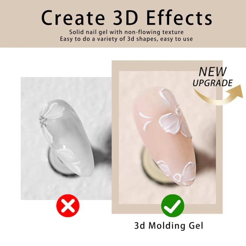 - Create 3D Effects: Solid nail gel with non-flowing texture, easy to do a variety of 3d shapes, can be used with magic mirror powder to get a variety of effects, easy to use