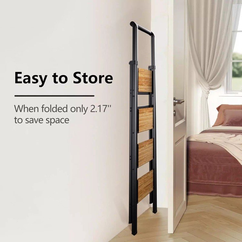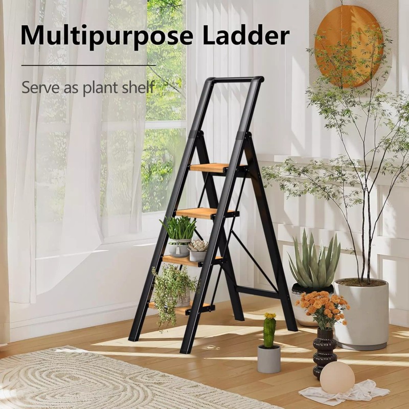 - Easy to Use & Wide Usage:The folding ladder is perfect for the kitchen, bedroom, closet, library, classroom, garage, can also be a decorative ladder, which can be used as a book shelf, flower shelf, etc