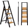 Step Ladder 4 Step Folding Stool with Anti-Slip Widened Sturdy Pedal and Handgrip, Portable Lightweight Aluminum Ladder for Home,Kitchen,300 Lbs Capacity-Black+Woodgrain