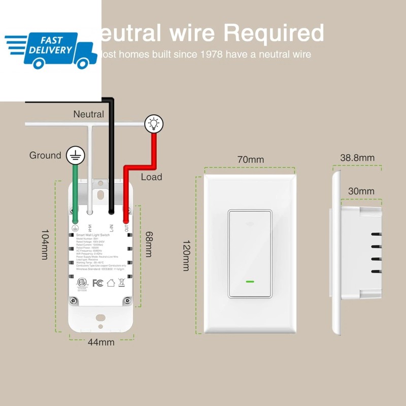 Does not apply Switch, 2.4Ghz Wi-Fi Light Switch Compatible with , Google Home