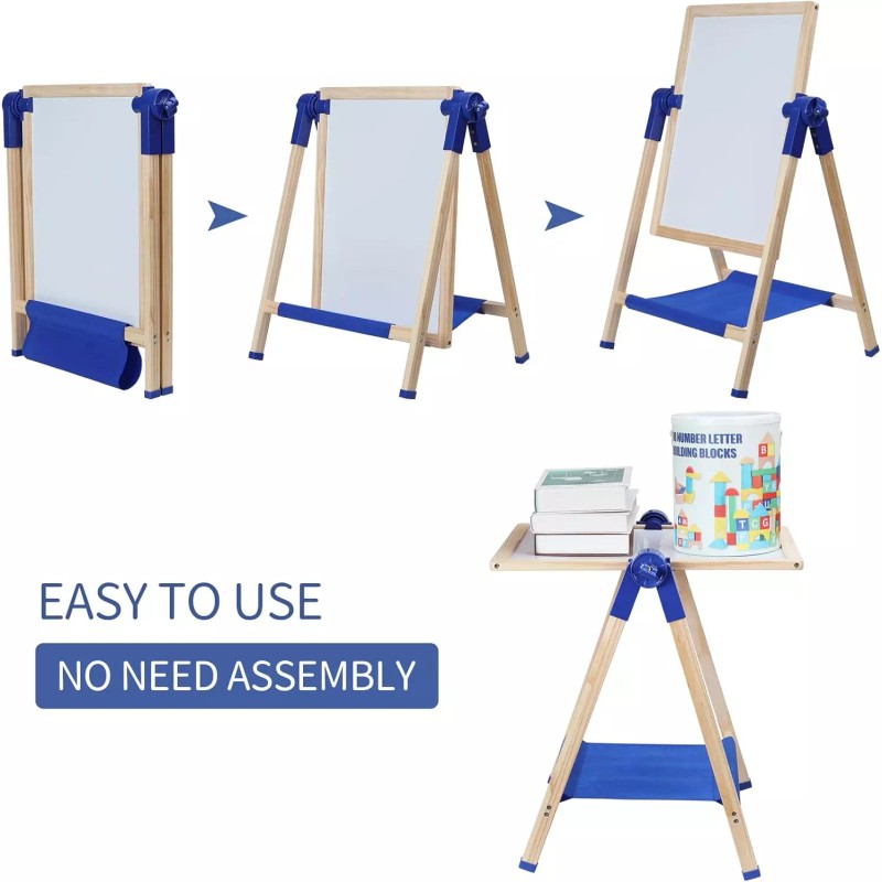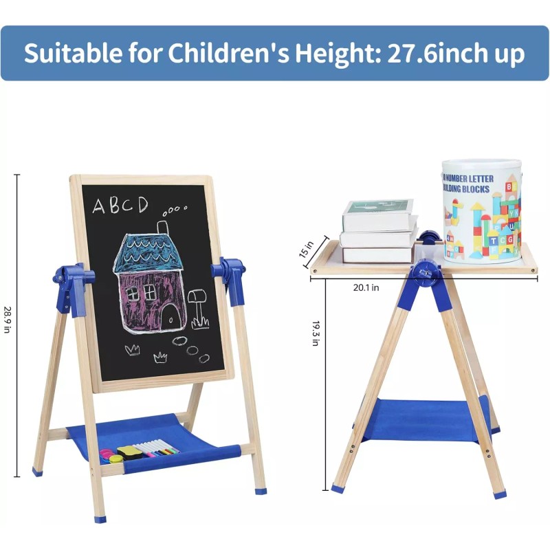 • Versatile: Double-sided toddler easel with a dry erase board on one side and a chalkboard on the other, perfect for creative play and learning. Our easel for toddlers also has art supplies. Our Easel for kids has unique design, it can be used as an art table or a painting desk for children to do homework or play, drawing.