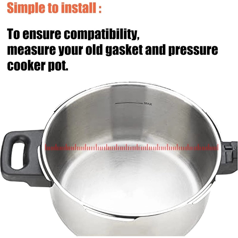 - 【Simple to install :】 To ensure compatibility, measure your old gasket and pressure cooker pot. pressure cooker sealing rings are manufactured to arrive up to 1" too large to be resilient to normal shrinkage. soaking your gasket for pressure cooker in warm water for 10 minutes before installing it can increase pliability.