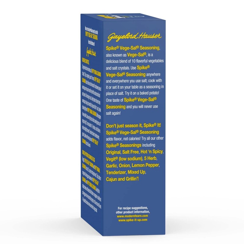 - SPRINKLE IT ON: Spike Salt Vege-Sal Seasoning is versatile and can be used as a perfect poultry seasoning or popcorn seasoning. Shake it on foods like green or root vegetables prior to cooking or season salads and side dishes just before serving.