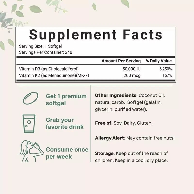 Synergistic Support: Our advanced 2-in-1 formula combines the power of 10,000 IU of vitamin D3 with 200 mcg of vitamin K2, delivering unparalleled support for bone and cardiovascular health.