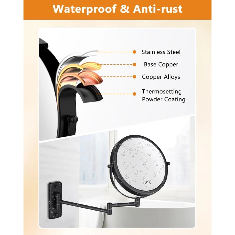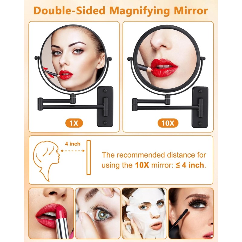 - Double Sided 1X & 10X Magnification - Our wall mounted magnifying mirror is double sided with 1X and 10X magnification. 1X high-definition cosmetic mirror for overall makeup and skincare, and the 10X magnification mirror suits close-up details like eyeliner pencil, eyebrows or lipstick.