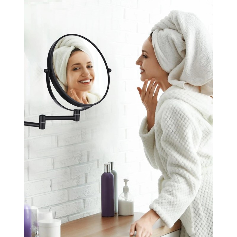 - Adjustable Extendable Mirror - Black swivel makeup mirror's telescoping arm is up to 12 inches in length. The magnifying makeup mirror with extending arm can save space effectively. You could fold it flat against the wall to save space if it's not in use.