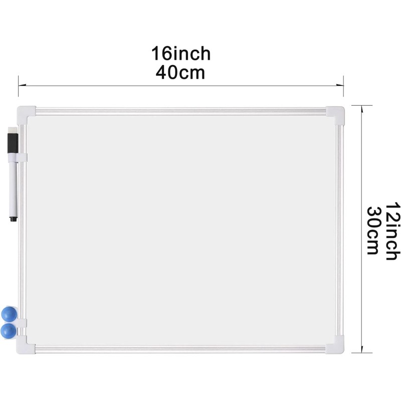 - Overall Size: Small white board 12 x 16 INCH. 2 magnets, 1 magnetic markers.
