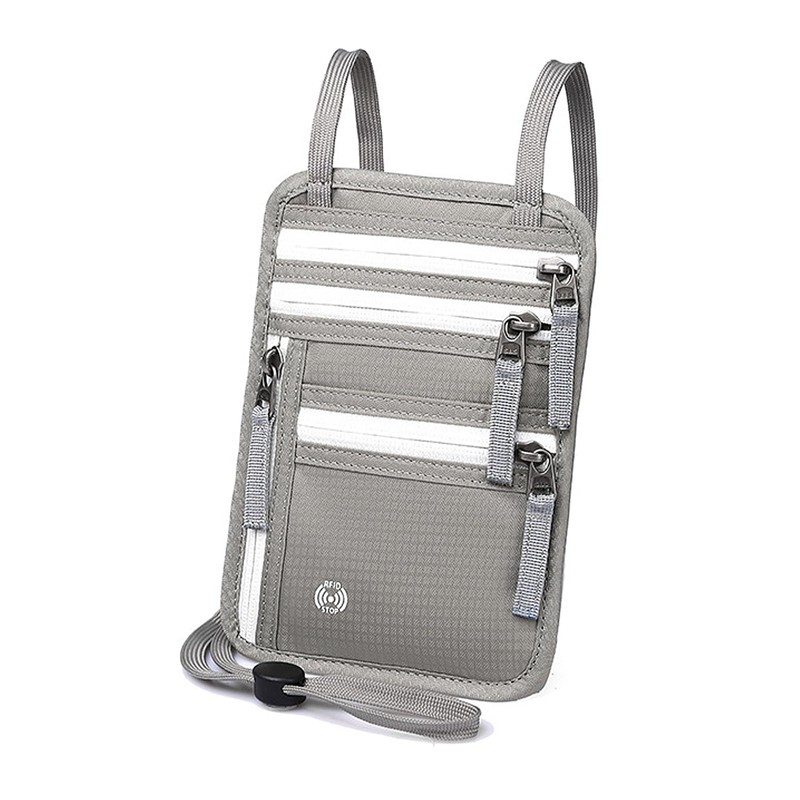 DOETYD RFID Blocking Neck Wallet with Passport Holder – Ultra-Thin Travel Pouch for Concealed Carry(Light Grey