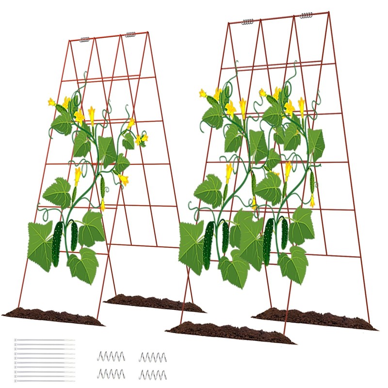 • EASY TO ASSEMBLE: No tools needed, this A-frame cucumber trellis take minimal time and effort to set up. It is easy to be foldable and convenient to store after dismantling