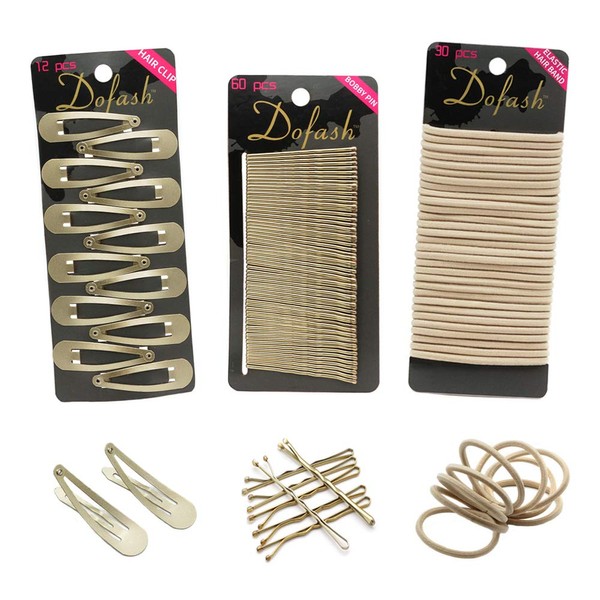 Dofash Women's Braided Good Hair Set, 102 Counts Set, Braided Hair Clips for Women (Blonde Bobby Pins, 60 Pieces + Blonde Hair Ties 30 Pieces + Snap Hair Clips, 12 Pieces (Blonde)