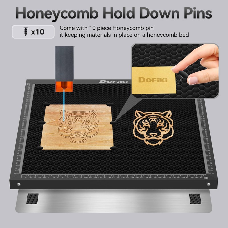 • Steel Honeycomb: The Honeycomb grid is made from steel. Unlike it’s aluminum counterparts, this unit gives you the option to hold your materials down with strong magnets to ensure that they do not move during cutting or engraving. Come with 10 piece Honeycomb pin to keep materials in place.