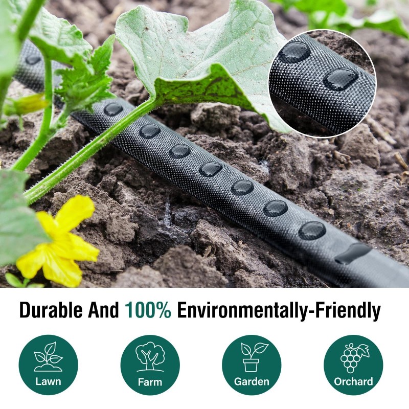 - Uniform Water Seepage - The soaker hose from premium PVC material, that makes it exceptional performance. Its PVC lining is reinforced with robust fabric, ensuring a leak-free design that maintains steady pressure and consistent water flow. This guarantees uniform water seepage along the entire length of the hose.