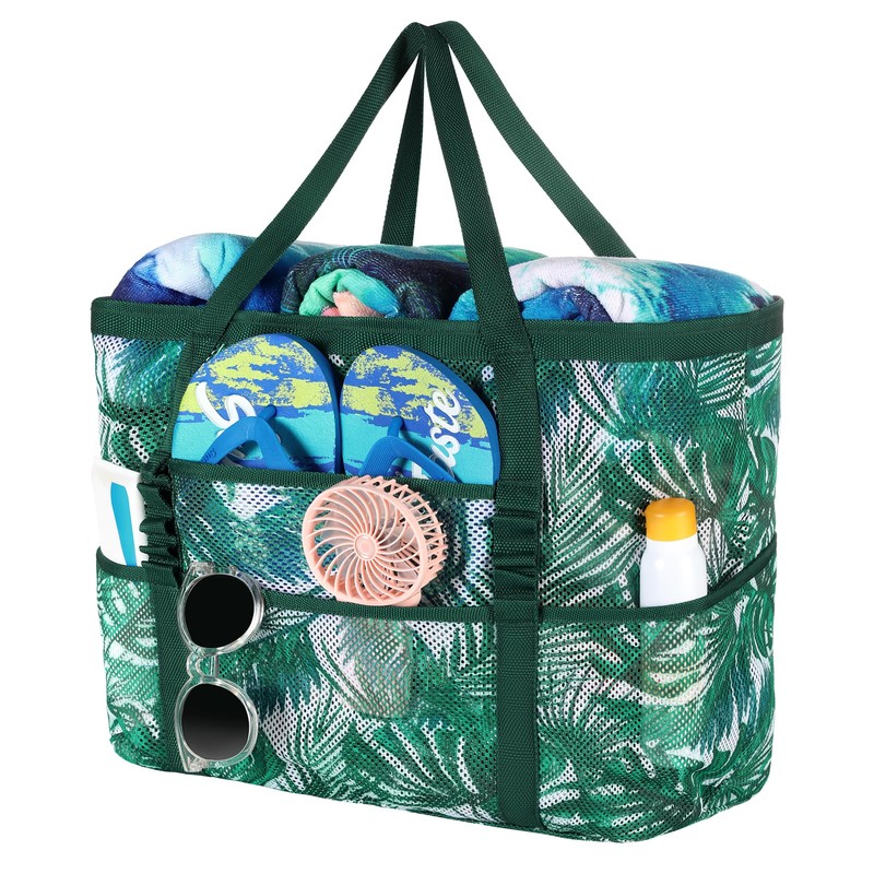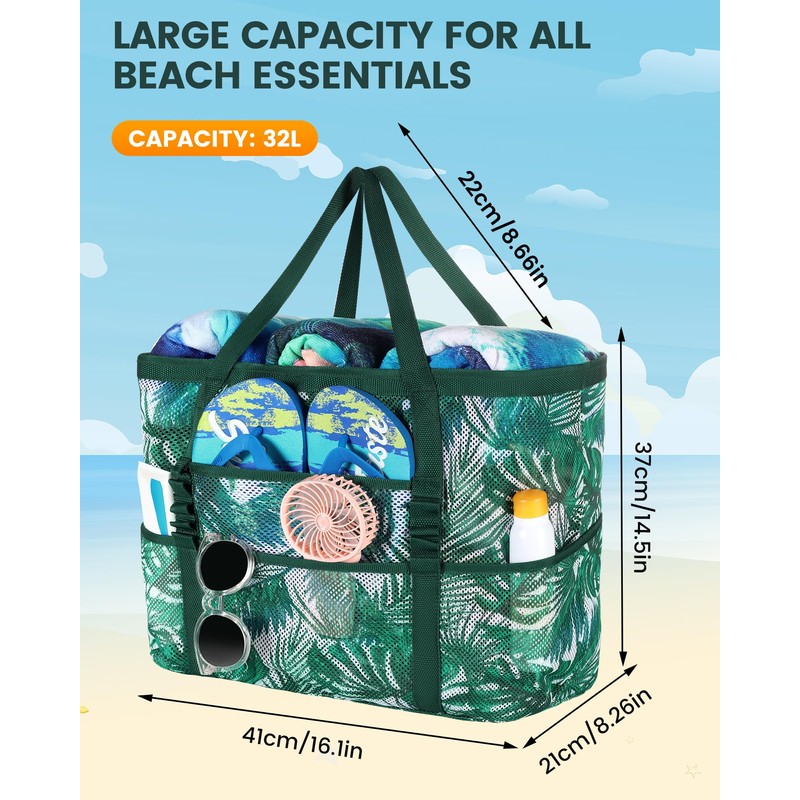 DOFOWORK Mesh Beach Bag - Extra Large Beach Bags for Women with 9 Pockets