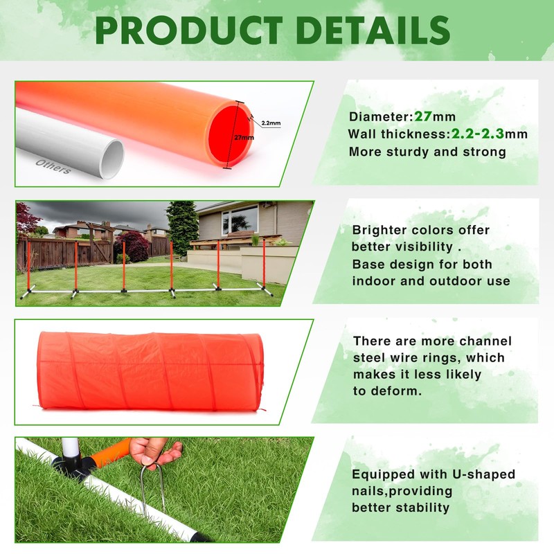 • 【Great Backyard Training Partner】Ideal for yards, parks, or indoor spaces! A good choice for beginner dogs and pet owners to build confidence, improve agility, and enjoy bonding time. Help your dog exercise, stay health, burn energy, and have fun