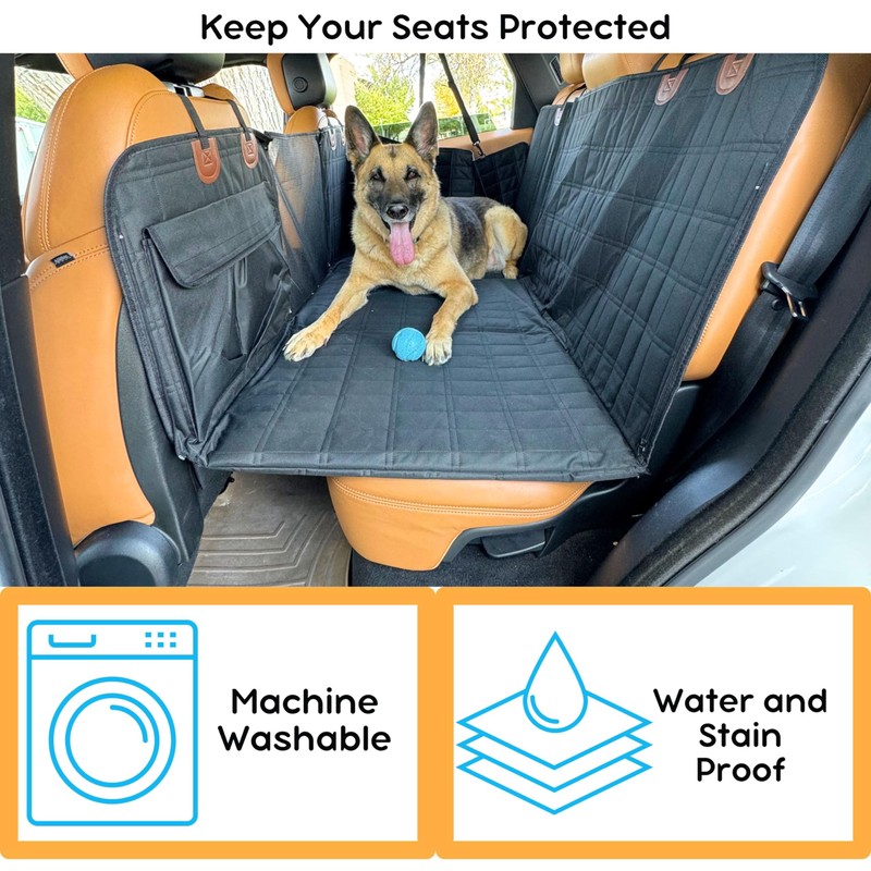 Dog Back Seat Extender - Waterproof Mesh Platform for Cars, Trucks, SUVs - With Storage Pockets and Door Covers (Black)