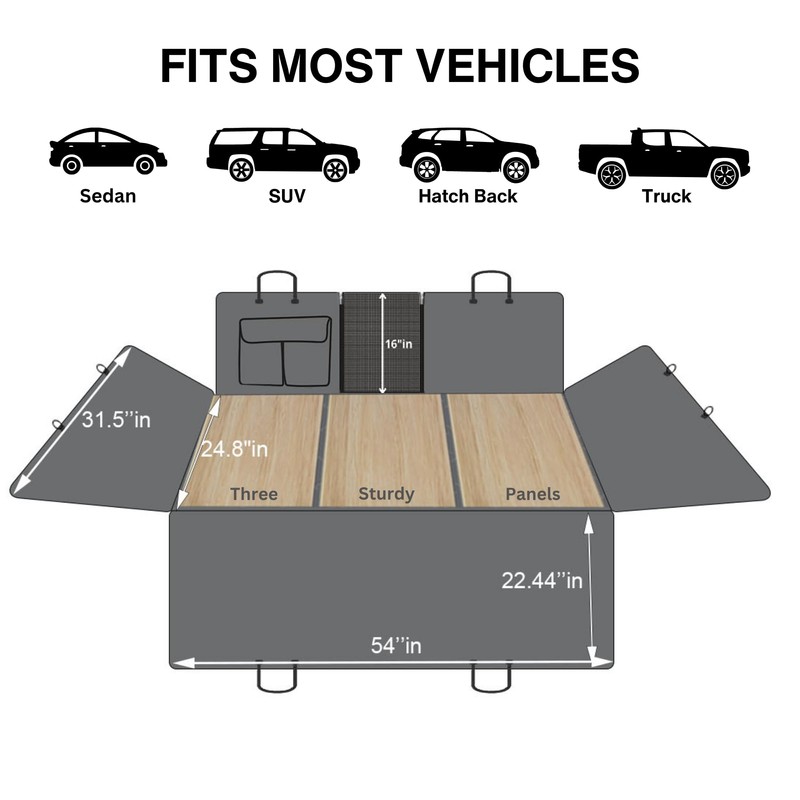 - Bridge the Gap Between the Rear and Front Car Seats - Our seat extender has 3 sturdy wood platforms, that extend the backseats in your vehicle to maximize the space, providing your dog with double the room for a comfortable happy ride, and prevents them from falling off the seat, the platform can hold up to 280 Ibs; this dog bridge is an ideal fit for all cars, suvs and trucks