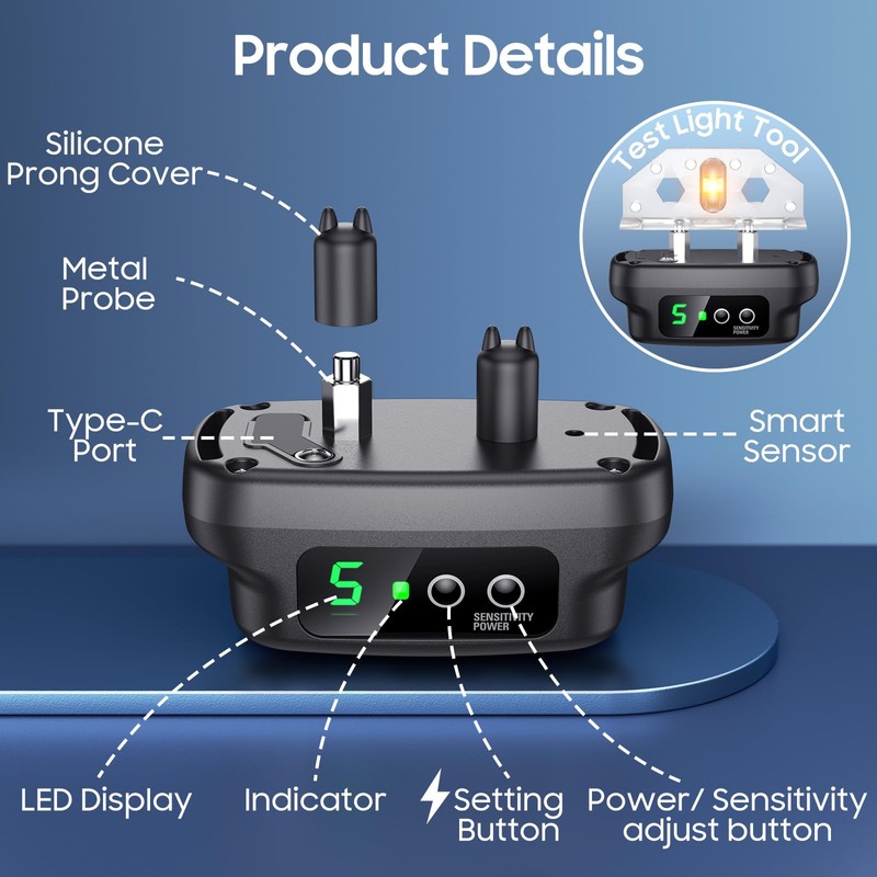 - 【3 Humane Training Modes】This bark collar offers three training modes:beep,vibration,⚡(0-5)mode,⚡ function can be shut off if you don't want to use it. It has 5 sensitivity levels that can be adjusted to match environmental noise.Level 1 is Least sensitive,ideal for outdoor use;Level 5 is Most sensitive,perfect for low noise situations.You can adjust the settings to fit your furry friend's personality and your living situation.